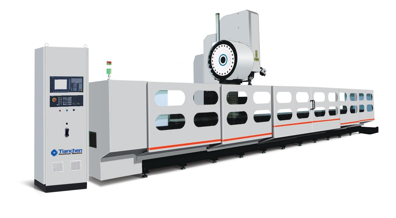 適用于航空鋁型材、軌道交通鋁型材及各種工業(yè)鋁型材的孔、槽及輪廓形狀等工序的加 工,具備銑削、鉆削、鏜孔及攻螺紋等功能。